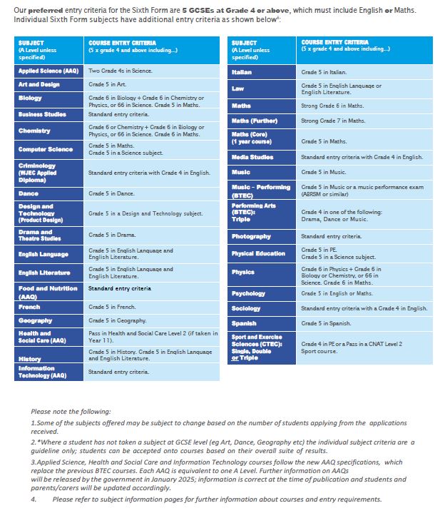 Please see below for the latest entry criteria for Mark Rutherford School Sixth Form: